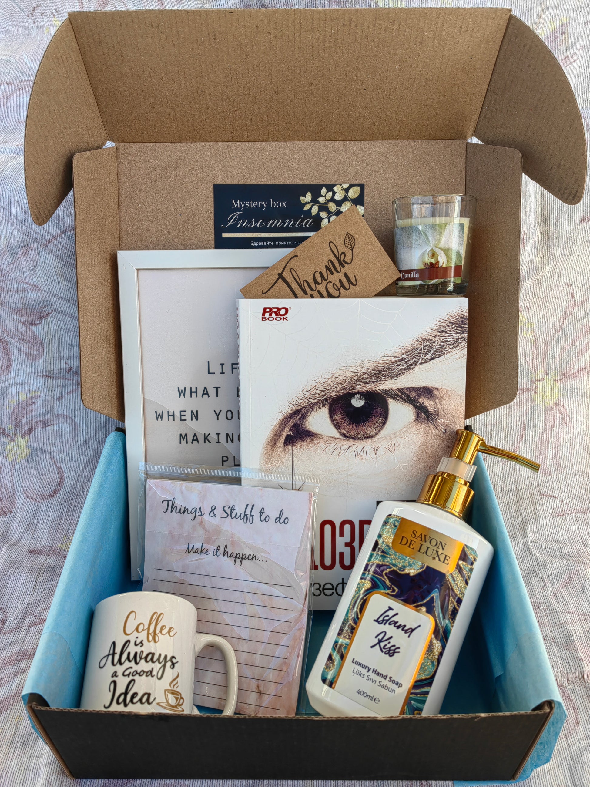 🎁 В малката Mystery Box Insomnia ще откриете книга, която ще държи интереса ви до самия край, а също така и пет подаръчета-изненади.