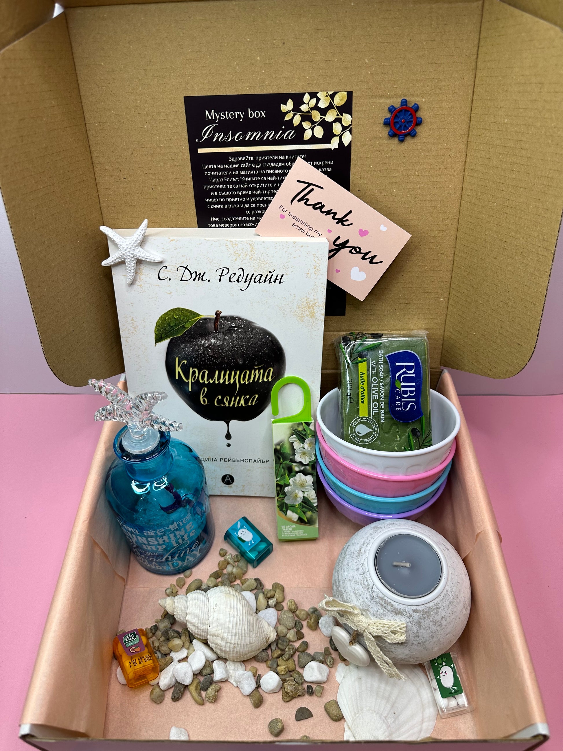 🎁 В малката Mystery Box Insomnia ще откриете книга, която ще държи интереса ви до самия край, а също така и пет подаръчета-изненади.